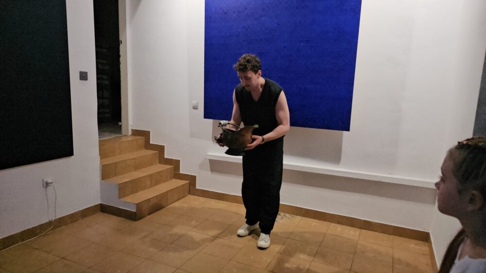Data wernisażu Michała Koszewskiego nie była przypadkowa – przypadła na najdłuższy dzień w roku i najkrótszą noc. W tajemnicę tego wieczoru Artysta wprowadził uczestników, realizując działanie performatywne.